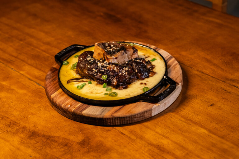 Ossobuco Cozido Por 36 Horas, Temperado Com Alho E Alecrim Na Manteiga. Polenta Cremosa Com Queijo Muçarela, Catupiry E Noz-Moscada. Finalizado Com Cebolinha E Alho Desidratado Sabor Condimentos.