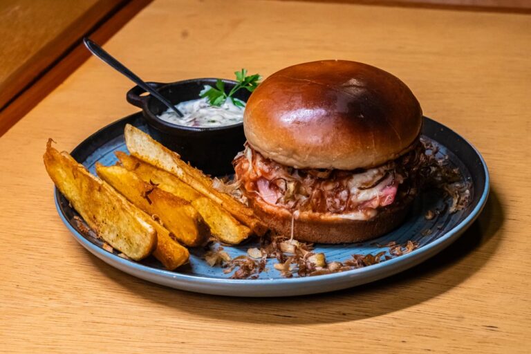 Pão brioche e uma parmegiana de filé mignon muito suculenta. Finalizado com alho-poró crocante.